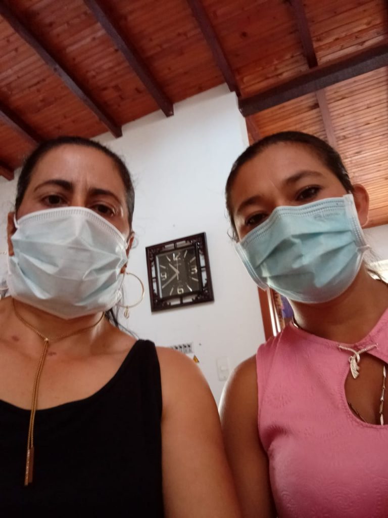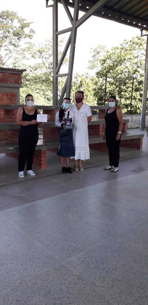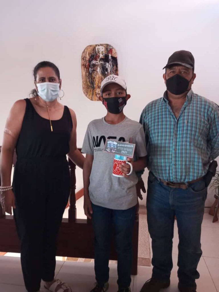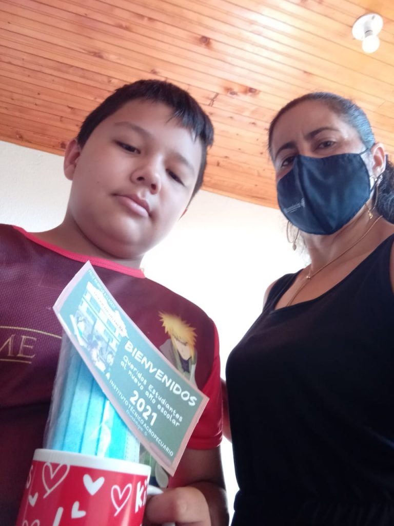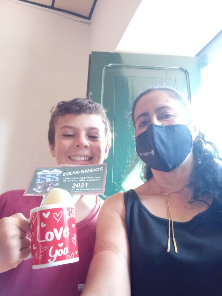 Profesora Alexandra Reyes grado séptimo visitando estudiantes y llevándoles un detalle como bienvenida